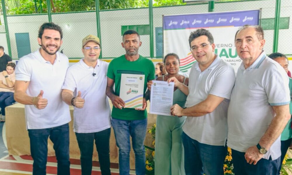 O governador Rafael Fonteles realizou, neste sábado (28), a entrega de 250 títulos de propriedade rural a famílias das comunidades Areal, Morrinhos e Tinguis, em Floriano....