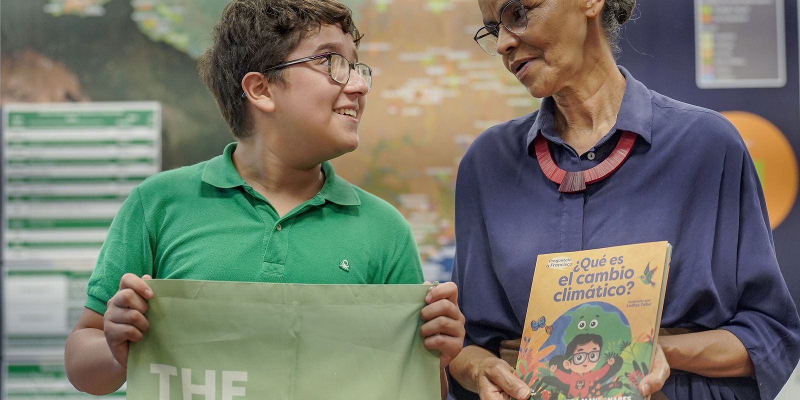 Ela lembrou com emoção o início de seu envolvimento com questões políticas e ambientais, quando tinha 17 anos, ao lado do líder seringueiro Chico Mendes. Francisco também entregou à ministra um livro infantil de sua autoria, que explica de maneira didática como é o processo de mudanças climáticas.