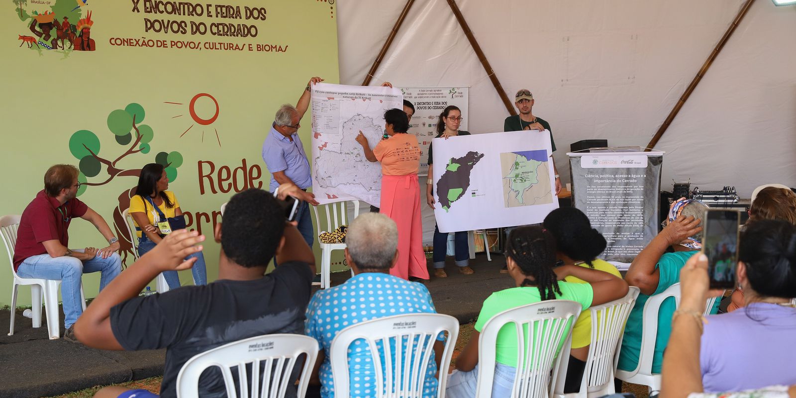Nesta sexta-feira (15), a programação teve início com rodas de conversa e oficinas que ocorreram embaixo das diversas tendas batizadas com nomes da fauna e da flora do Cerrado. Os diálogos ocorrem entre representantes do governo federal, acadêmicos, organizações da sociedade civil, ambientalistas e lideranças de comunidades moradoras do Cerrado. O público pode passar pelos espaços livremente e trocar saberes.