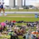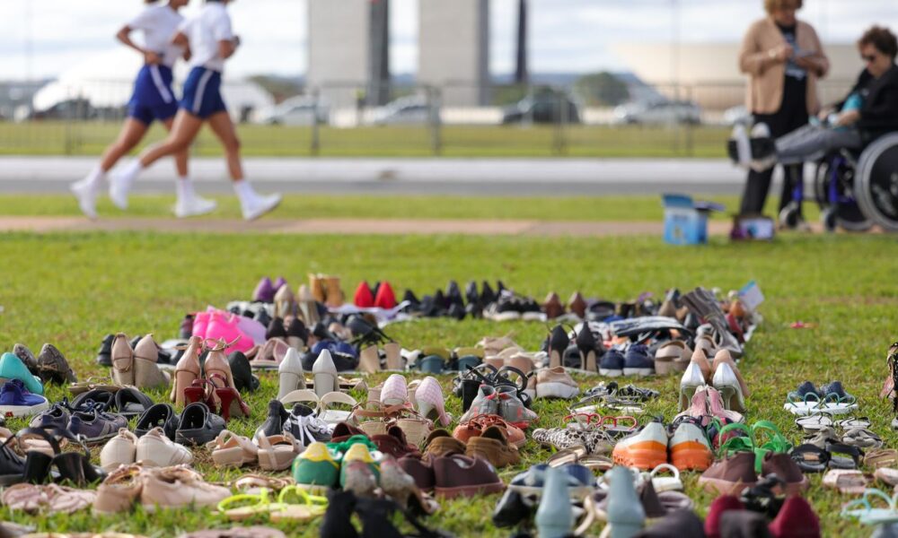 Cerca de 950 pares de sapatos usados foram colocados no gramado da Esplanada dos Ministérios, próximo ao Ministério da Saúde, em Brasília, na manhã desta terça-feira...