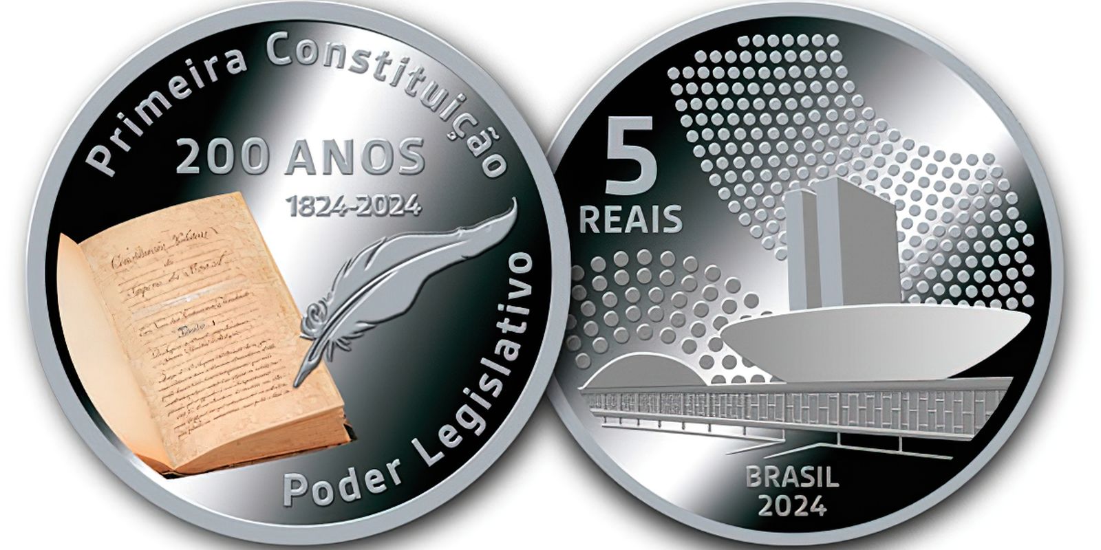 “O Banco Central está lançando hoje uma moeda comemorativa, homenageando, ao mesmo tempo, as duas câmaras do Poder Legislativo e o texto legal que os deu origem. Presente e passado se encontram nessa moeda, que, de um lado, mostra o Palácio do Congresso Nacional, símbolo do Poder Legislativo; e, de outro, o livro aberto da primeira Constituição, com a pena, como foi escrito 200 anos atrás”, afirmou.