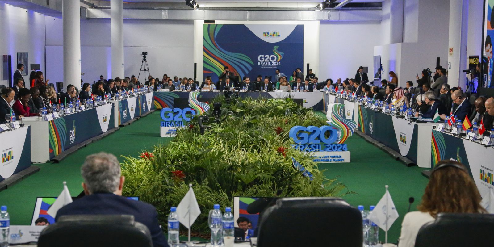 “Os ministros trocaram opiniões sobre guerras, conflitos e crises humanitárias em curso, destacando a Ucrânia e Gaza. A presidência brasileira do G20 observou que a trilha das finanças não é o fórum mais apropriado para resolver questões geopolíticas e propôs que estas questões continuem a ser discutidas em fóruns e reuniões relevantes”, destacou o texto, repetindo a declaração do ministro da Fazenda, Fernando Haddad, durante a entrevista coletiva de encerramento do encontro.