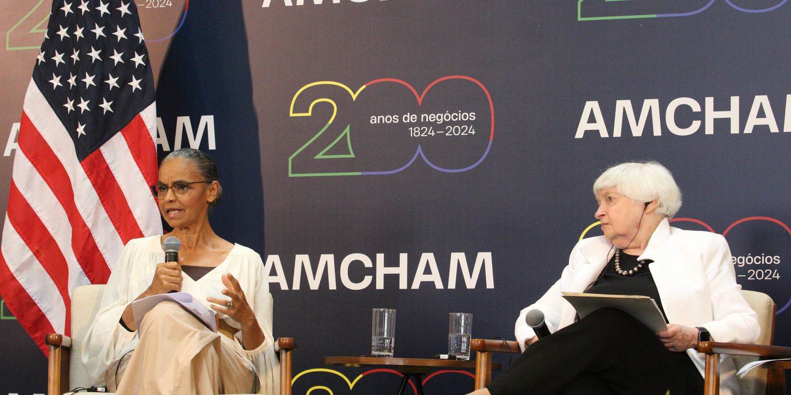 A ministra participou de uma mesa com a secretária do Tesouro dos Estados Unidos, Janet Yellen.