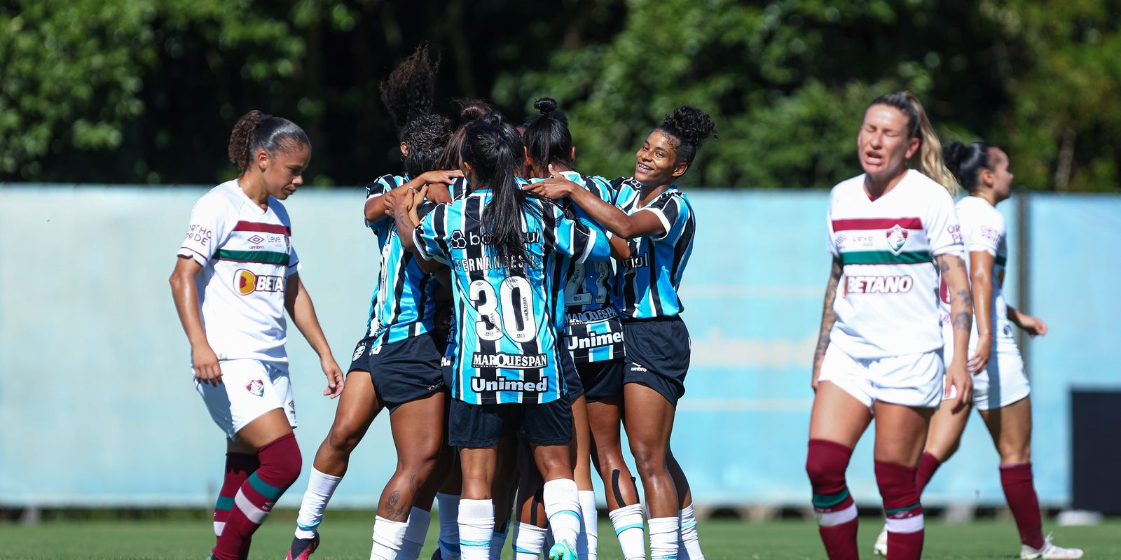 Aos 37, a meia Dayana Rodríguez conseguiu o desarme na intermediária e rolou para a atacante Raquel Fernandes chutar, dentro da área. A goleira do Fluminense fez boa defesa, mas a própria Rodríguez, na pequena área, aproveitou a sobra e ampliou. No minuto seguinte, a lateral Raíssa Bahia avançou pela esquerda e cruzou rasteiro para a atacante Cássia soltar a bomba no canto esquerdo de Amanda Coimbra e marcar o terceiro do Grêmio.