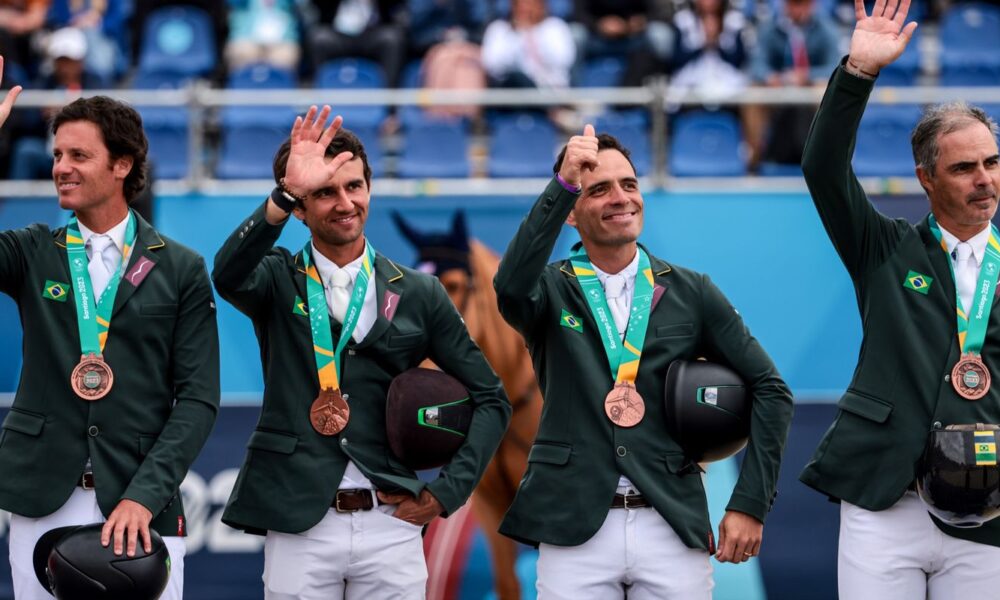 A equipe brasileira de hipismo conquistou a medalha de bronze na disputa por equipes de saltos nos Jogos Pan-Americanos de 2023, disputados em Santiago (Chile). O...