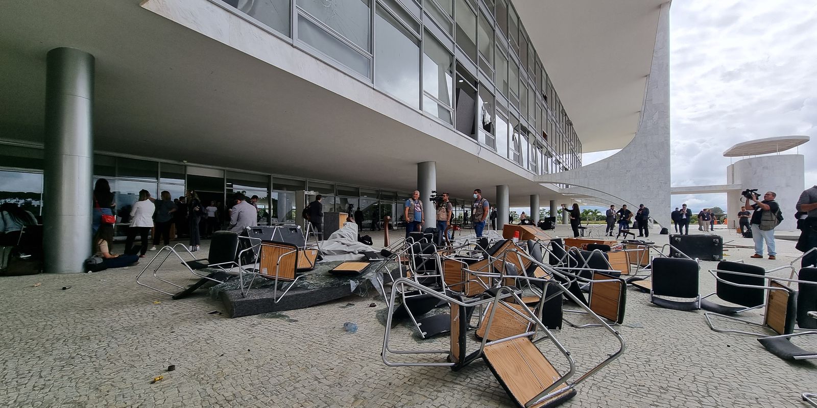 São julgados os réus Fabricio de Moura Gomes, Eduardo Zeferino Englert, Moises dos Anjos, Jorginho Cardoso de Azevedo, Rosana Maciel Gomes e Osmar Hilbrand. Todos foram presos pela Polícia Militar dentro do Palácio do Planalto durante os atos de depredação.