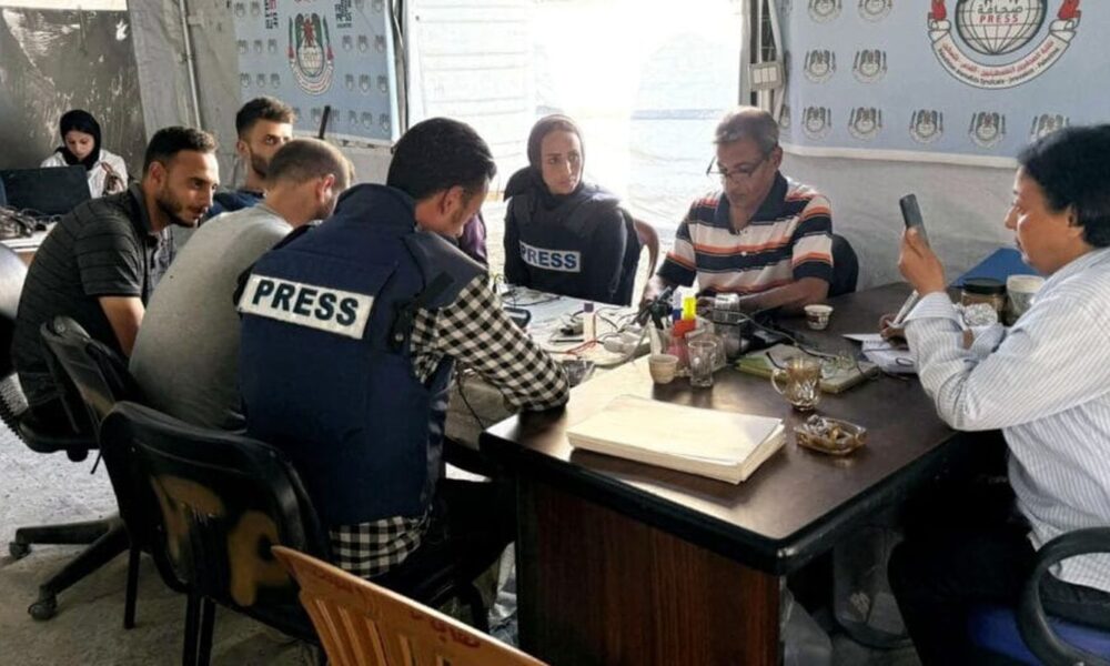 Um grupo de jornalistas palestinos na Cidade de Gaza teve sua tenda bombardeada por forças militares de Israel, na tarde desta quinta-feira (25), após participarem de...