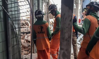 O Corpo de Bombeiros Militares de Sergipe prossegue as buscas por mais vítimas em escombros de prédio residencial que desabou matando três pessoas em Aracaju, no...