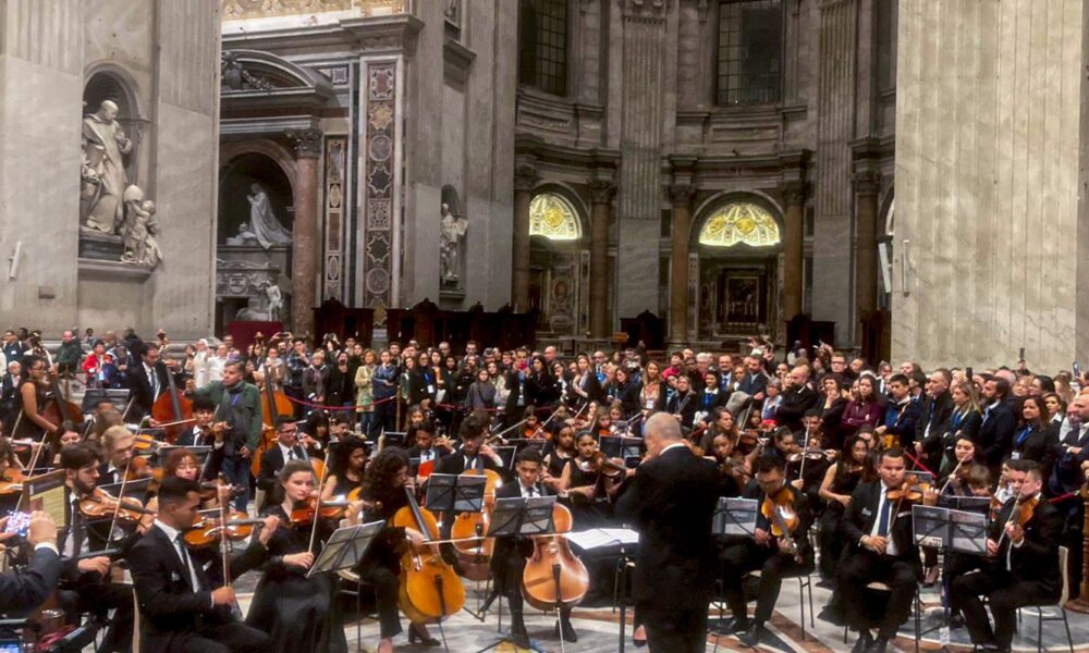 Nascida e formada por jovens da periferia de Recife, a Orquestra Criança Cidadã se apresentou nesta sexta-feira (3) no Vaticano, durante a realização do Concerto para...