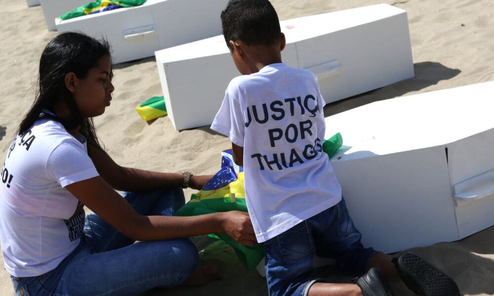 Os policiais militares Diego Pereira Leal e Aslan Wagner Ribeiro de Faria acusados de matar o menino Thiago Menezes Flausino, de 13 anos de idade, durante...