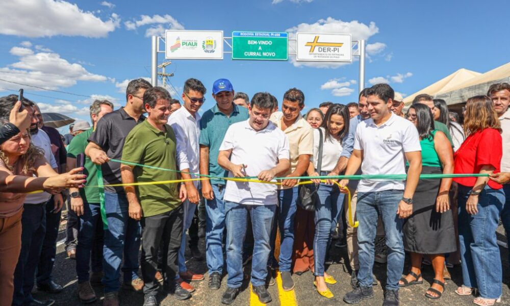 O governador Rafael Fonteles e o diretor-geral do Departamento de Estradas de Rodagem (DER), Leonardo Sobral, inauguraram obras nesta quarta-feira (11) que beneficiam cinco municípios (Caldeirão...