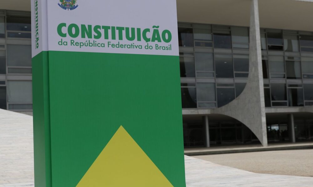 As sedes do Palácio do Planalto, do Supremo Tribunal Federal (STF) e do Congresso Nacional exibem, nesta segunda-feira (8), uma representação da Constituição Federal em suas...