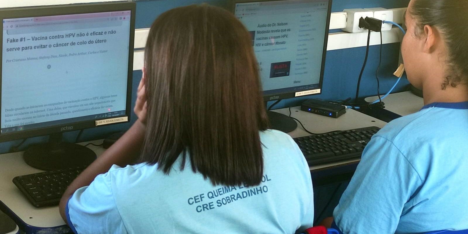 Nesta semana, alunos do Centro de Ensino Fundamental Queima Lençol, em uma área rural de Sobradinho, no Distrito Federal, aprenderam como identificar se uma informação que recebem pelas redes sociais, chats de conversa é verdadeira ou não.