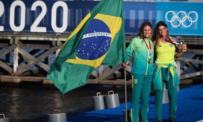 A dupla bicampeã olímpica Martine Grael e Kahena Kunze ficou com a sexta colocação na corrida da medalha no evento-teste de vela para os Jogos Olímpicos de...