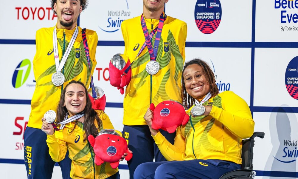 O Brasil conquistou seis medalhas (quatro pratas e dois bronzes), nesta segunda-feira (22), no Mundial de Natação Paralímpica em Singapura. Desta forma, a delegação brasileira chegou...